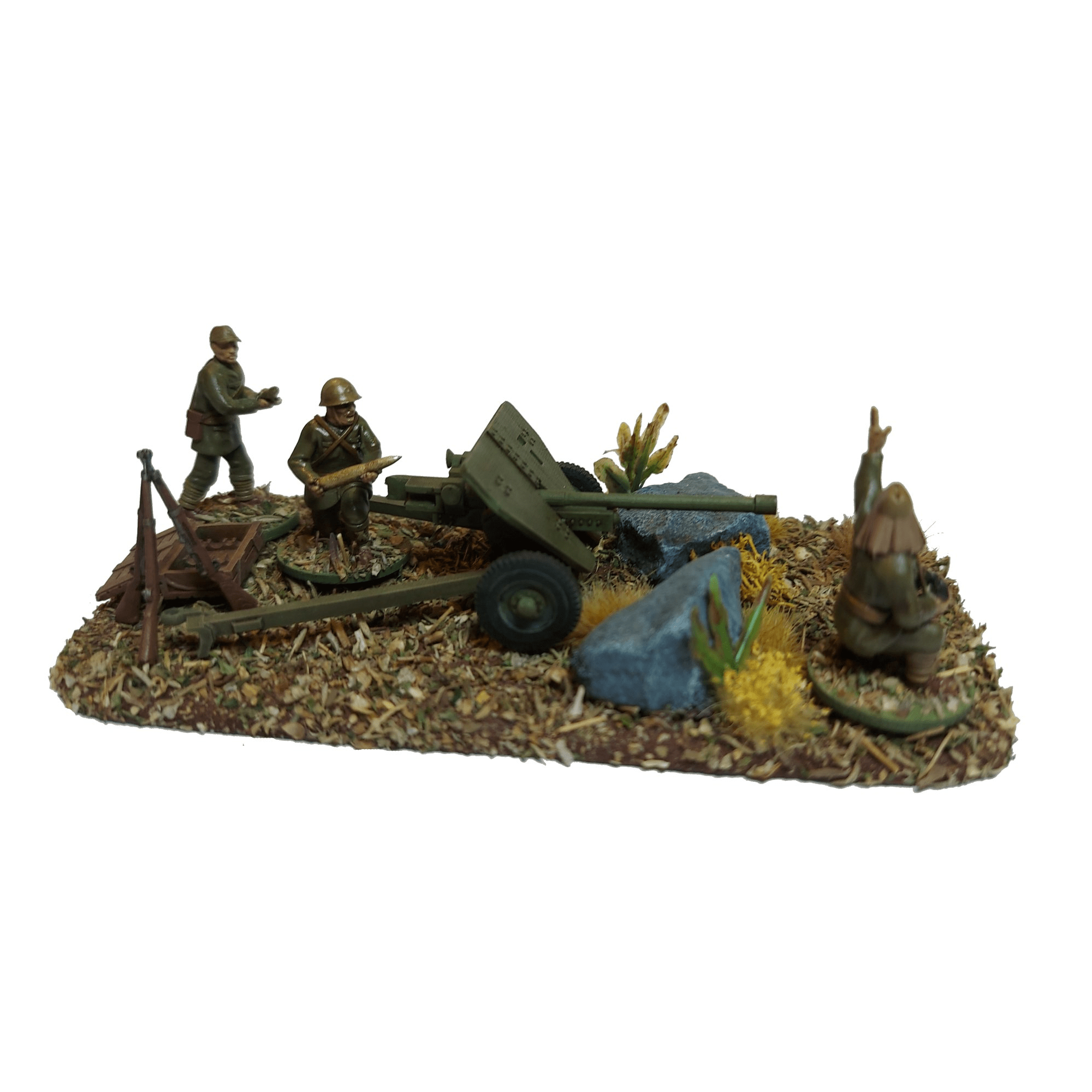The Type 1 47mm anti-tank gun was developed by Japan during WWII and first introduced in 1942. It is a low profile weapon with a gun shield, ideal for ambushing and concealment.